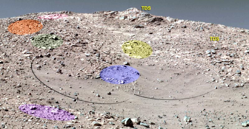 Nella foto in basso a destra potete vedere un frammento di TDS, le strane conchiglie di cui vi ho accennato in precedenza e che presentano notevoli differenze morfologiche rispetto ai soliti finti massi di Gusev.