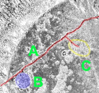 A indica il "tunnel" scavato dai tentacoli di quello che