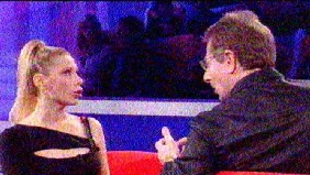 Alla dichiarazione della Stefanova è seguita una misurazione in diretta TV di cui riporto alcune immagini. Molti i commenti del presentatore, abbinati ad abbondante uso di mimica facciale, pause dosate ecc.... Una frase di Bonolis per tutte: "Ha fatto più fatica a crescere o a contraffare il documento?" Vedete, lettori di Space Freedom, riporto solo esattamente