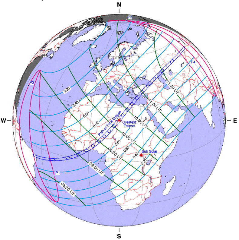 sull'Africa lungo la "linea di totalità".