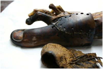 Un alluce di pelle e legno risalente al 1000 a.C. per una donna egiziana di mezza età potrebbe essere la protesi più antica del mondo. Appartiene a una mummia visibile al Museo Egizio del Cairo. Resta da capire se davvero sia una protesi oppure se sia stato attaccato per la mummificazione. “Ci sono buone probabilità che sia una protesi - spiega Jacky Finch del Centro di Egittologia Biomedica di Manchester - perche' il dito finto appare usurato e ben articolato al piede della mummia”.