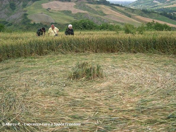 Flattening not geometrical. The field’s owner say that the barley usual bends when is ripe. Rain and wind have stressed the phenomenon | ||||||||||||||||||||||||||