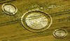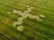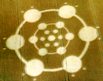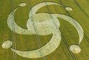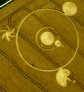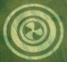 grano | 4 cerchi posti all'estremità ed un quinto centrale per una geometria cruciforme composta da numerosi semicerchi. Qualcuno ha pensati sia simile ad una svastica | |