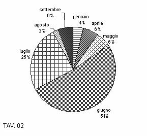 circles) e considerevole quello di giugno, interessato, da solo, da 27