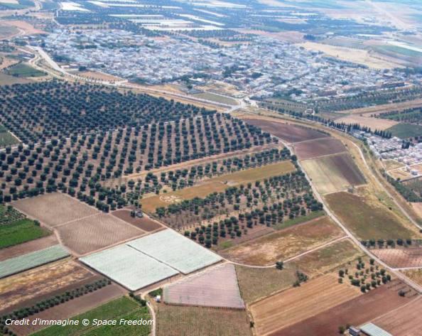 trova stretto tra "rettangoli" di terreno coltivati ad ulivi, con