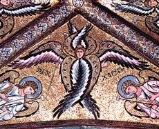 angeliche impresse a mosaico nel sublime abside della Cattedrale di