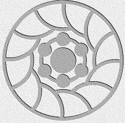 Il disegno è concentrato sulla larga fascia perimetrale mentre l'interno è composto da spighe erette. Lo completano una serie di cerchietti, 12 interni alla formazioni ed altri 12 posti esternamente, | ||||