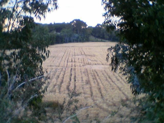 Basic description of the design: One ring of 7,5 m of diameter. Further background information: It is a declared human work, mine! Various dills, intermingling with the crop, as it is a biological field, disturb the final effect. I was not able, because of the soil position, to record better. |