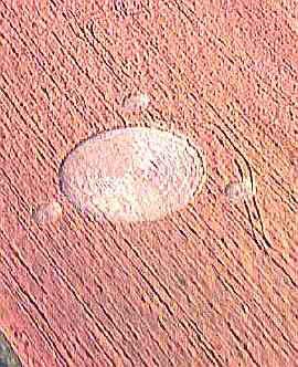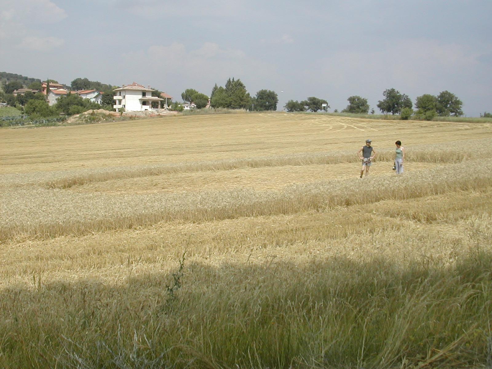 Basic description of the design: They are three circles. Two are of about 3 meters, the other one has a diameter of about seven meters; all are anticlockwise. Further background information: Found by Mauro Matta, a farmer from Pabillonis. Somebody is sure to have seen on Friday 4th of July, in the night, a strong light in the area. A farmer thinks it has been the strong Mistral wind of 4th and 5th of July. |