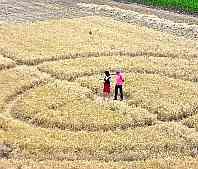 Basic description of the design: described as 2 circles but, checking more attentively the photos, the crop circle seems a bit more jointed. Updating: we were not wrong! I would say it is one of the most complex shape never arranged in Italy until now. Second only to the one in Treviso. I don’t know why but it gives me the idea of an acrobat on one wheel holding something in his mouth :-). Further background information: Discovered by a couple from Montalto, Alberto D. and Miriam M who were flying over the area. The field’s owner , Nelso Perno, on the 17th, provided for the reaping. |