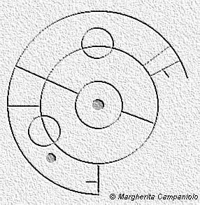 Basic description of the design: Made of two circular concetric coronas (the external one is 19,7 m of diameter) crossed by a longitudinal line 40 m long, limited, at its extremities, by two more circles |