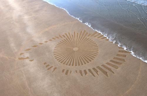 sabbia bagnata era grande 210 piedi e vi hanno lavorato sei circlemakers per sei
